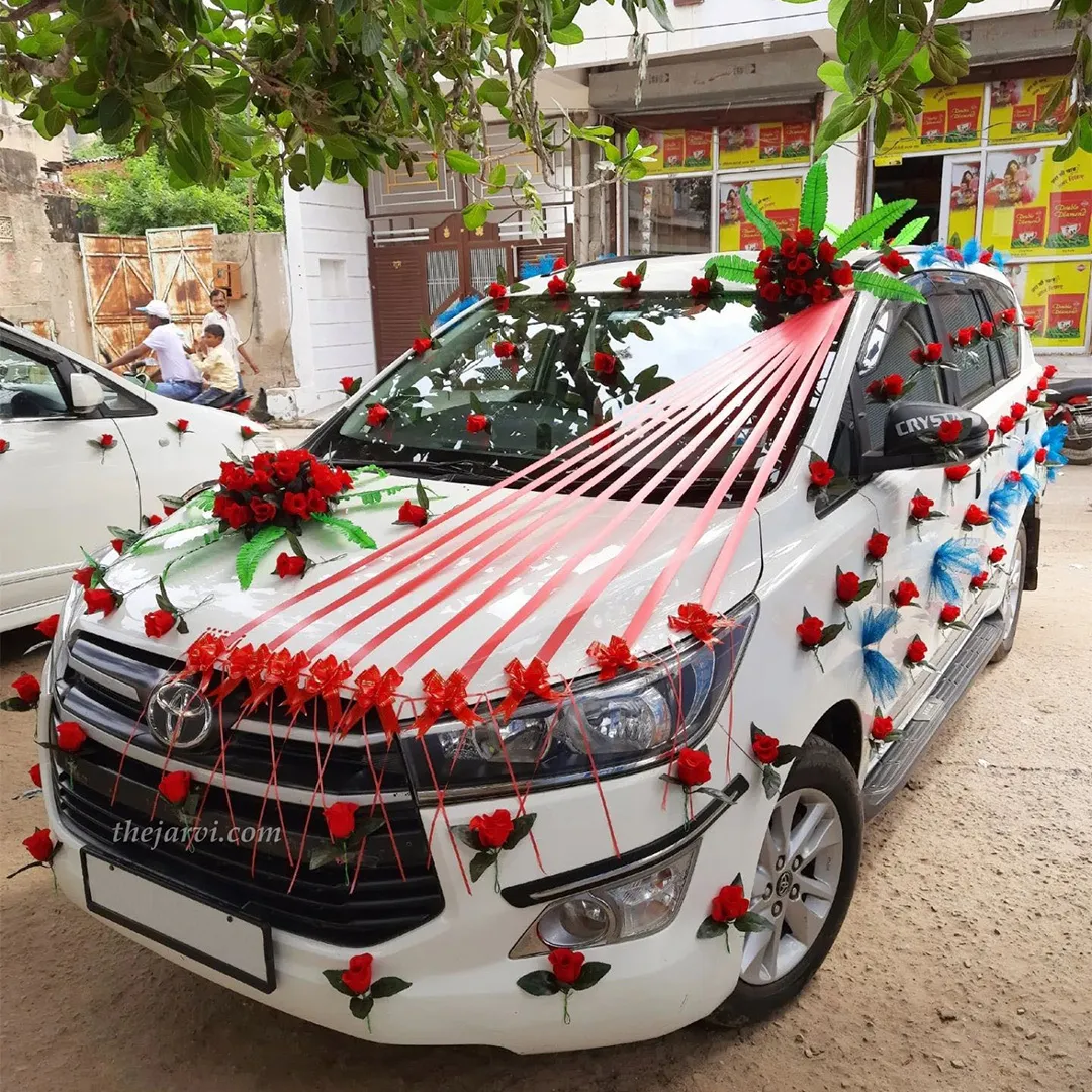 Add freshness to your vehicle with basic floral and ribbon decorations, ideal for small ceremonies and daily blessings.