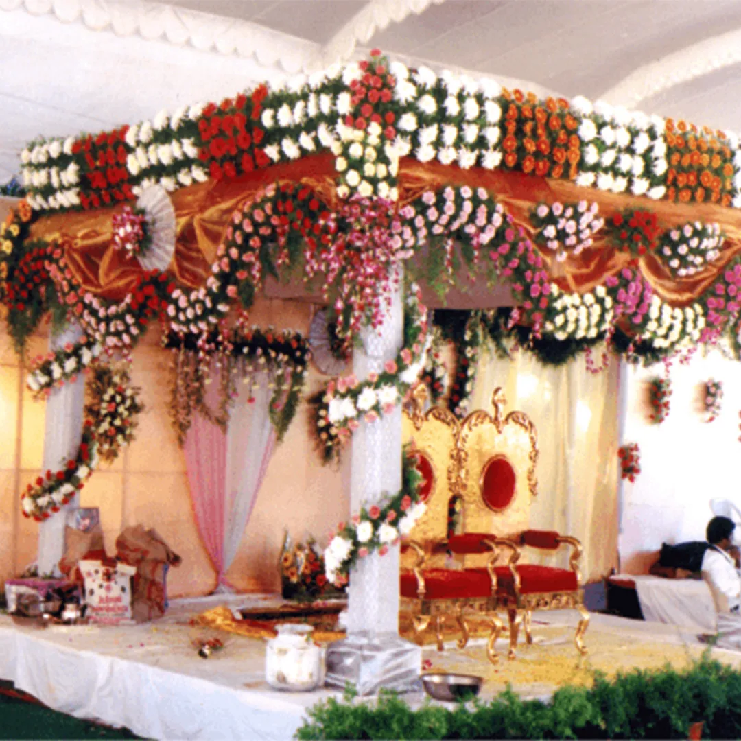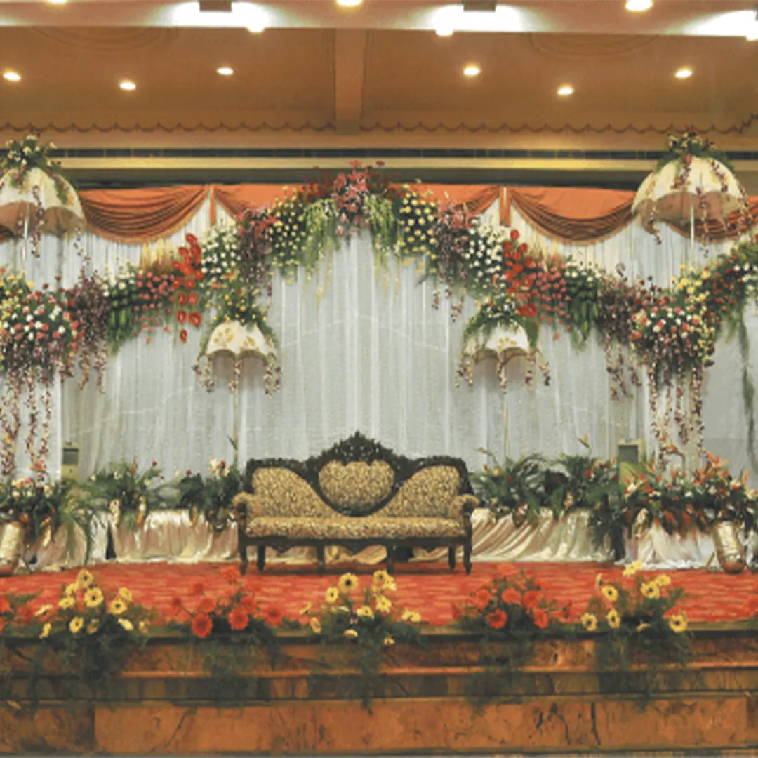 Perfect for grand weddings, this premium package transforms your venue with lush flowers, layered fabrics, and enchanting lighting for a magical celebration.